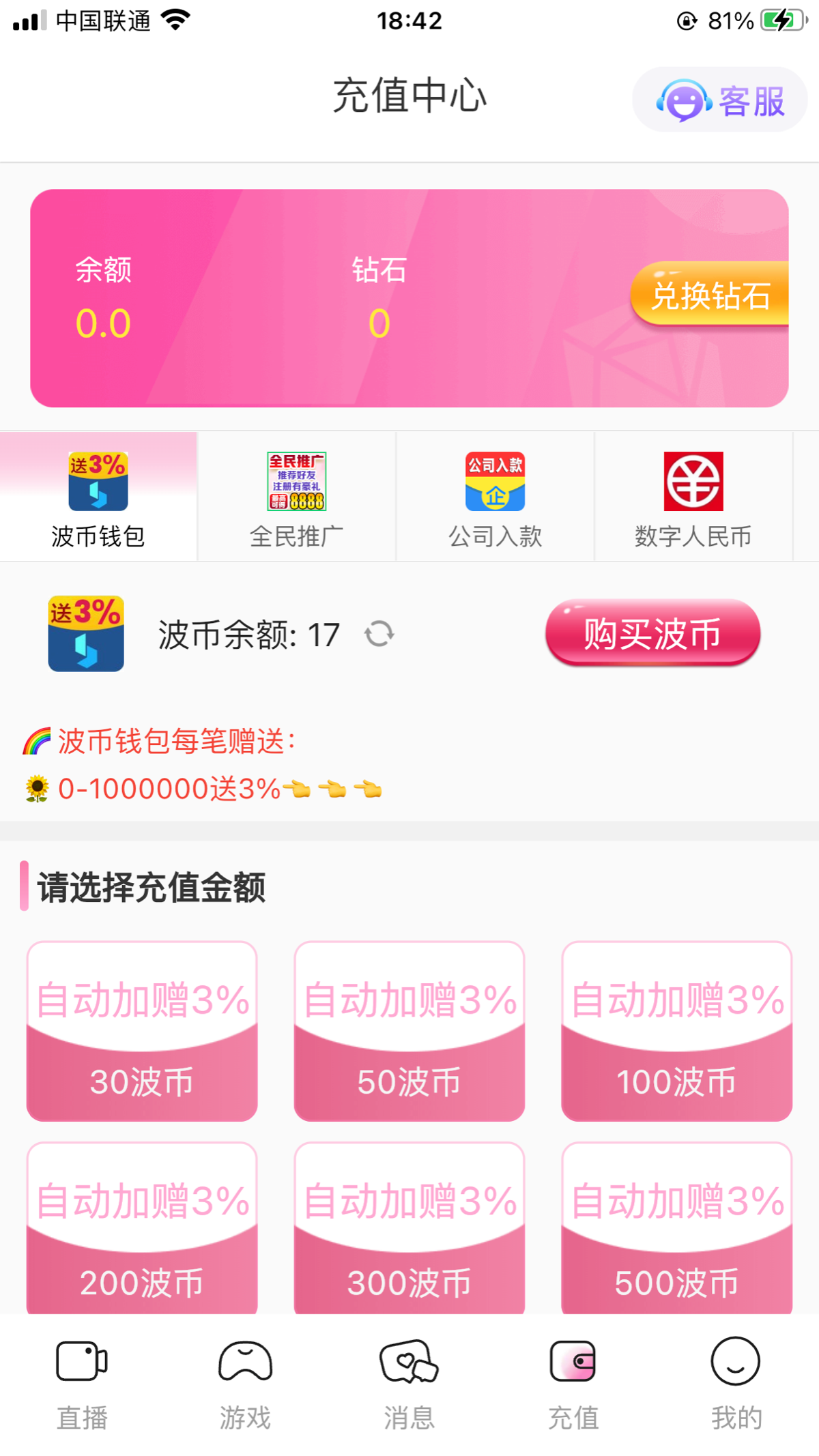 没想到没有充值金额他妈的