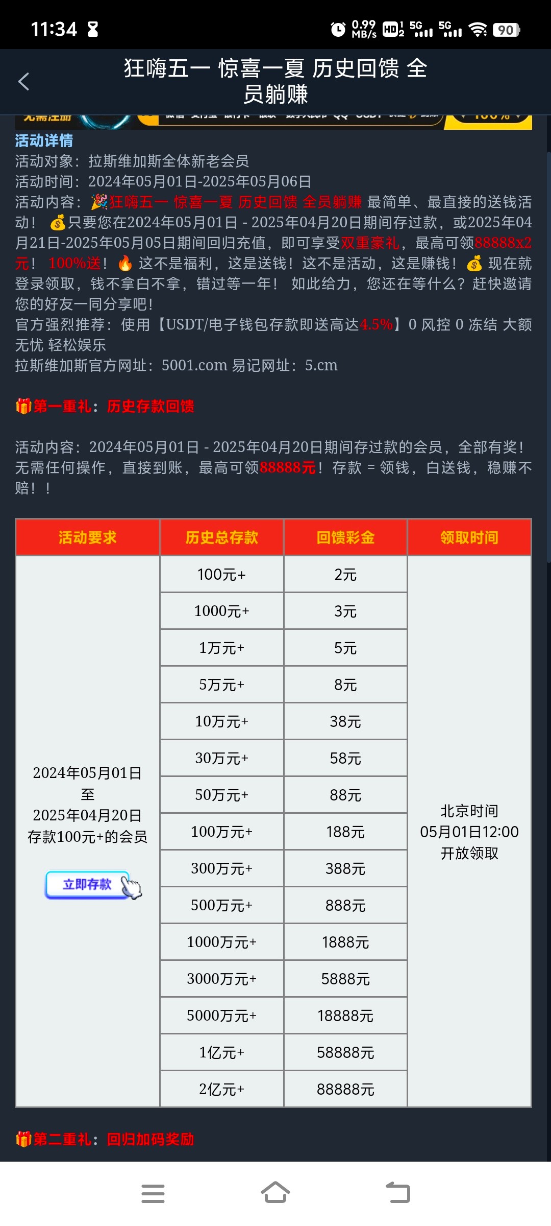 【拉斯维加斯5001】——五一历史回馈彩金