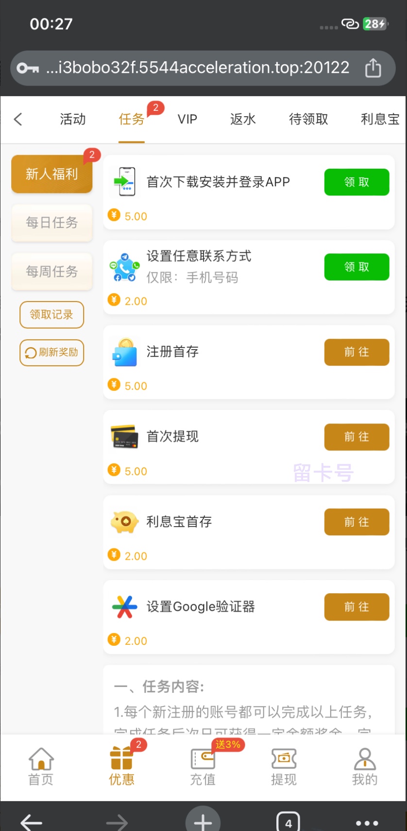 新葡京5544 完善任务得9块 5544.cc 下载app得5 绑定手机号得2 验证谷歌得2