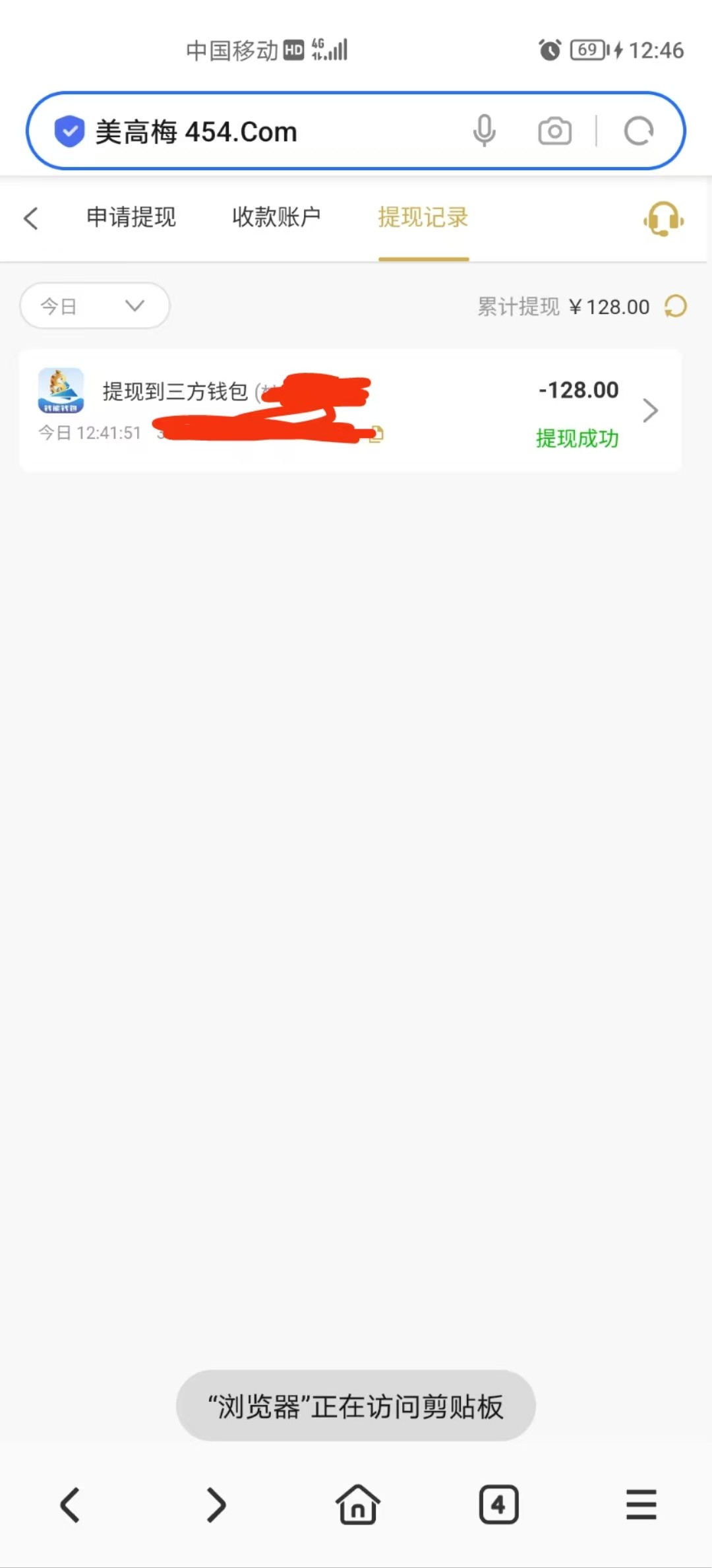 提现到账